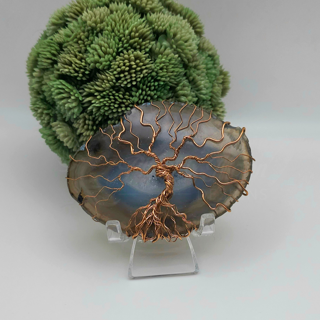 Dyed Agate Stone Slab with Tree of Life design wire-wrapped in stainless steel or bronze wire.